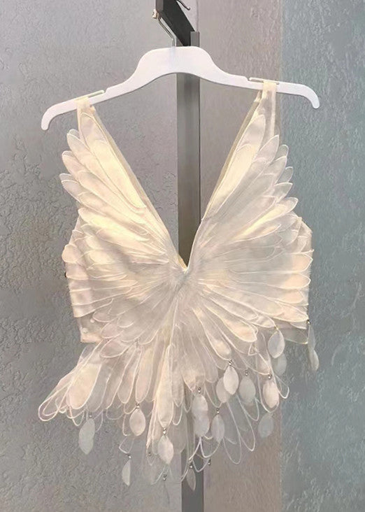 Slim Fit White Original Design Cotton Tank V Neck Sleeveless