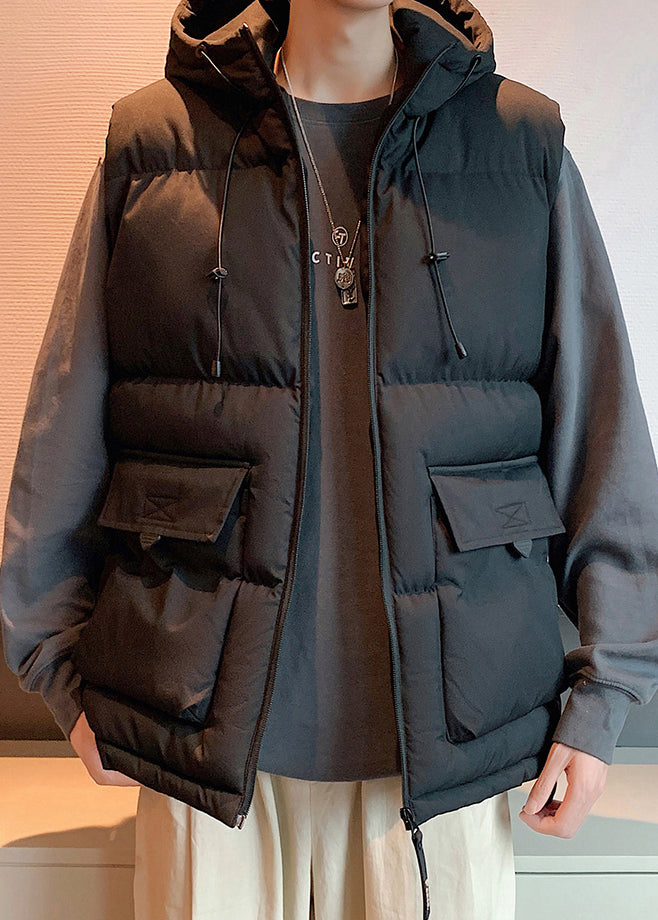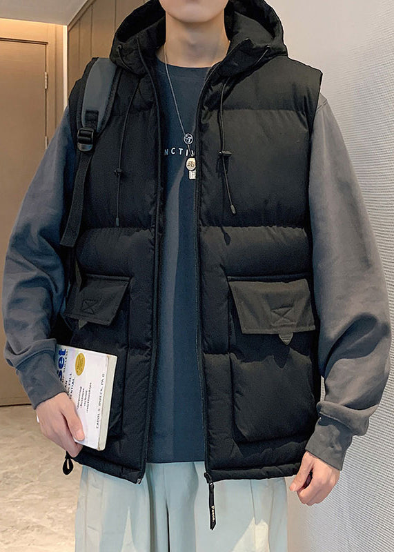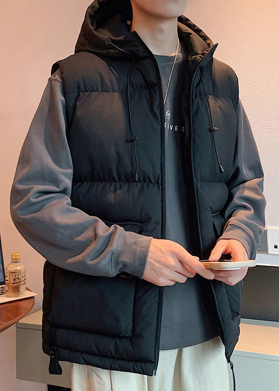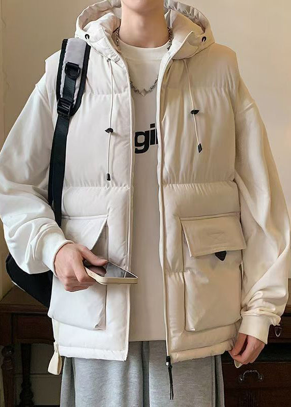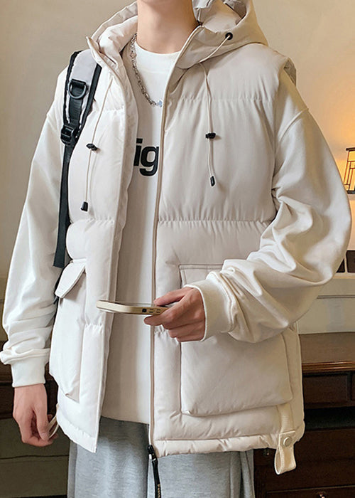 New Beige Hooded Pockets Cotton Filled Mens Waistcoat Sleeveless EQ037