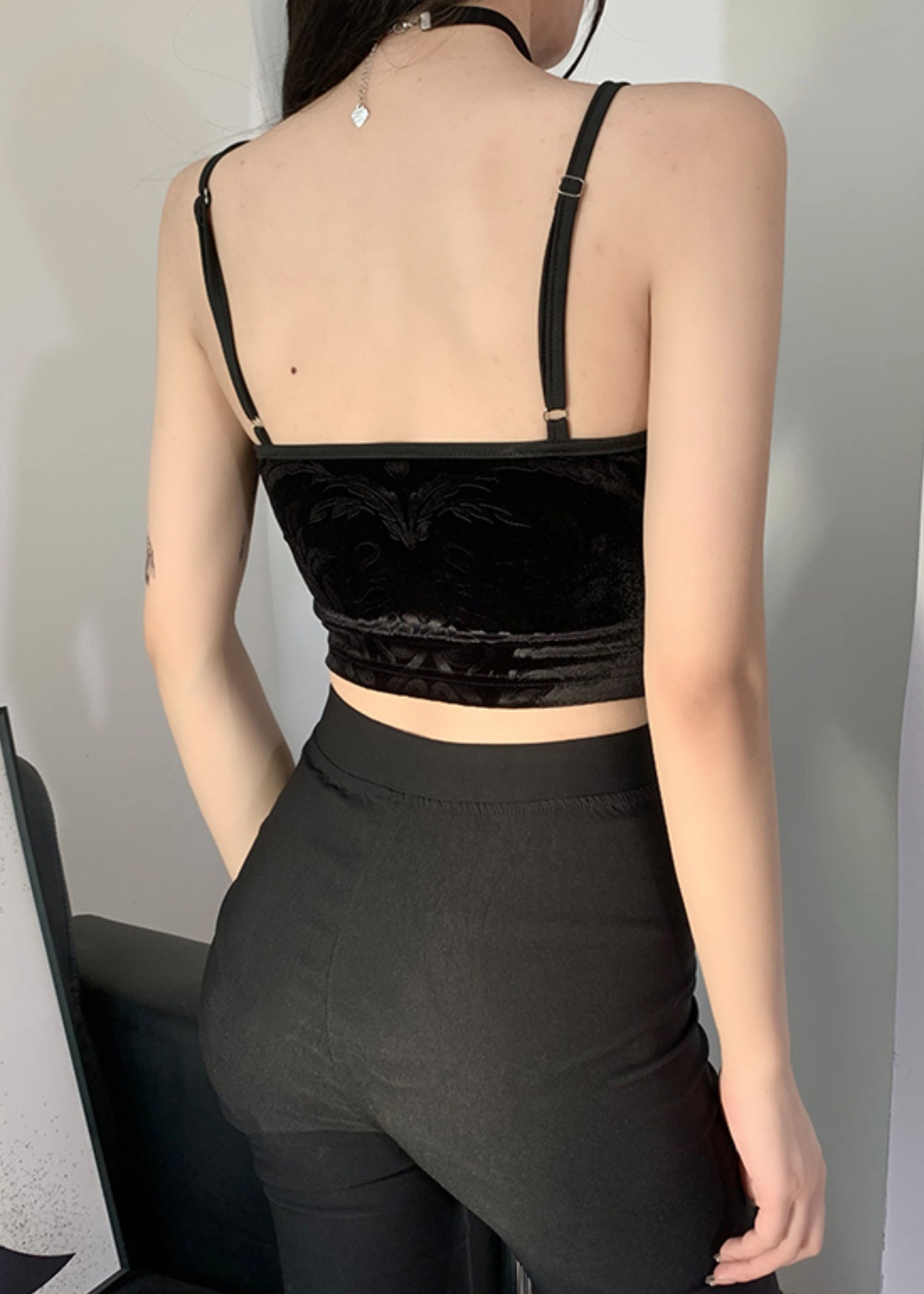 New Black Lace Backless Silk Velour Beach Spaghetti Strap Vest Sleeveless YT030