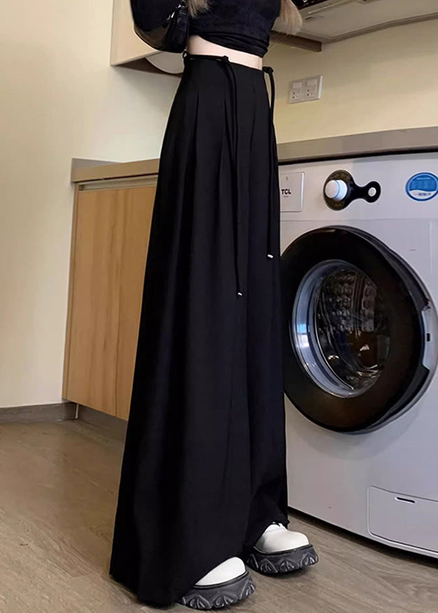 New Black Lace Up Solid High Waist Spandex Wide Leg Pants Fall PP033
