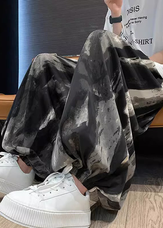 New Black Pockets Tie Dye Ice Silk Mens Lantern Pants Summer YT033