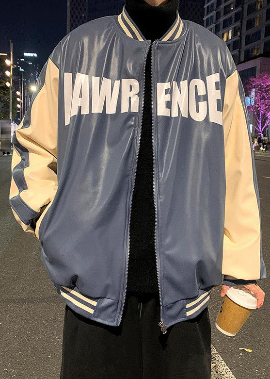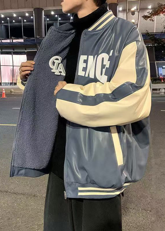 Coat Wear TC005 On Faux Patchwork Leather Thick Both Sides Mens New Blue Spring