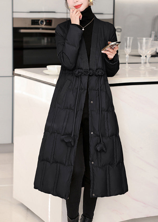 Discover the opulent charm of our New Chinese Style Red V Neck Pockets Duck Down Puffers Coat for the winter season, exuding elegance and sophistication in every detail.