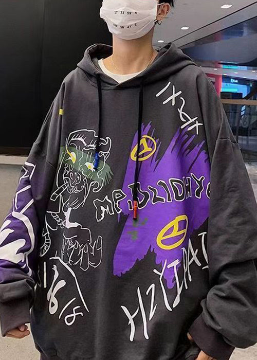 New Dark Gray Hooded Print Cotton Mens Sweatshirt Fall RP056