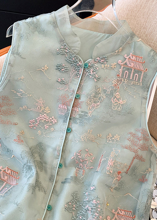 New Green Embroidered Button Tulle Waistcoat Sleeveless JH061