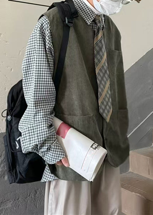 New Green O Neck Button Pockets Corduroy Men Waistcoat Spring RN010