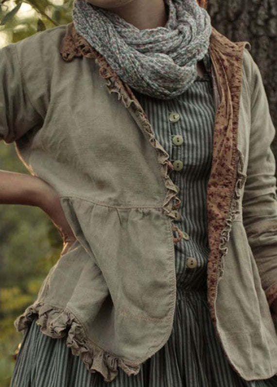 New Green Ruffled Solid Cotton Coat Long Sleeve FF060