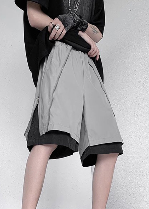 New Grey zippered Pockets Fake Two Pieces Men Pants Summer YT088