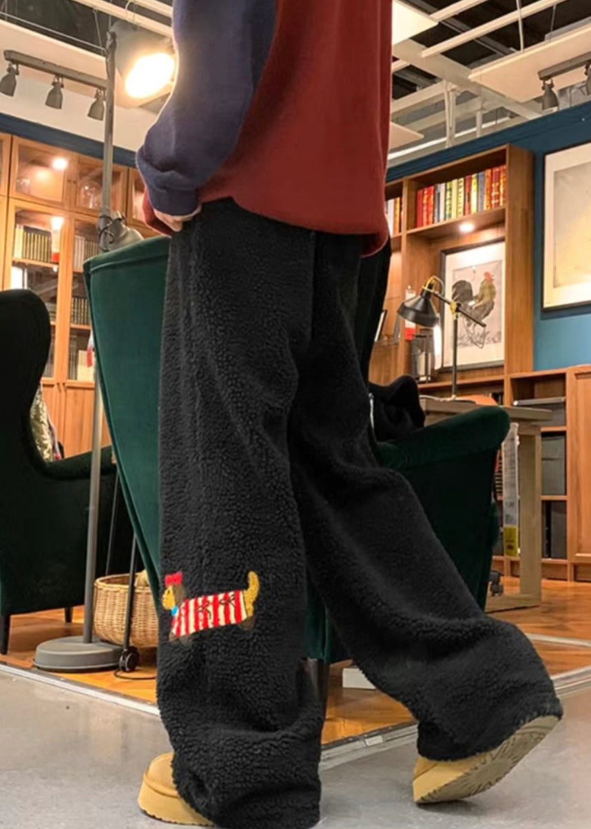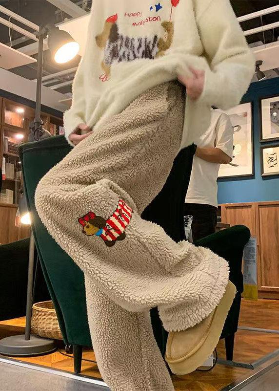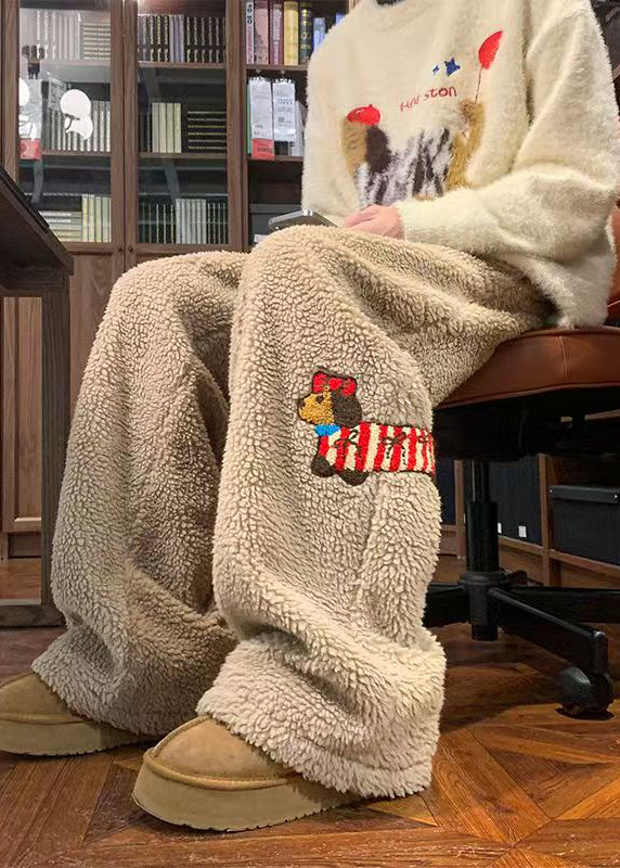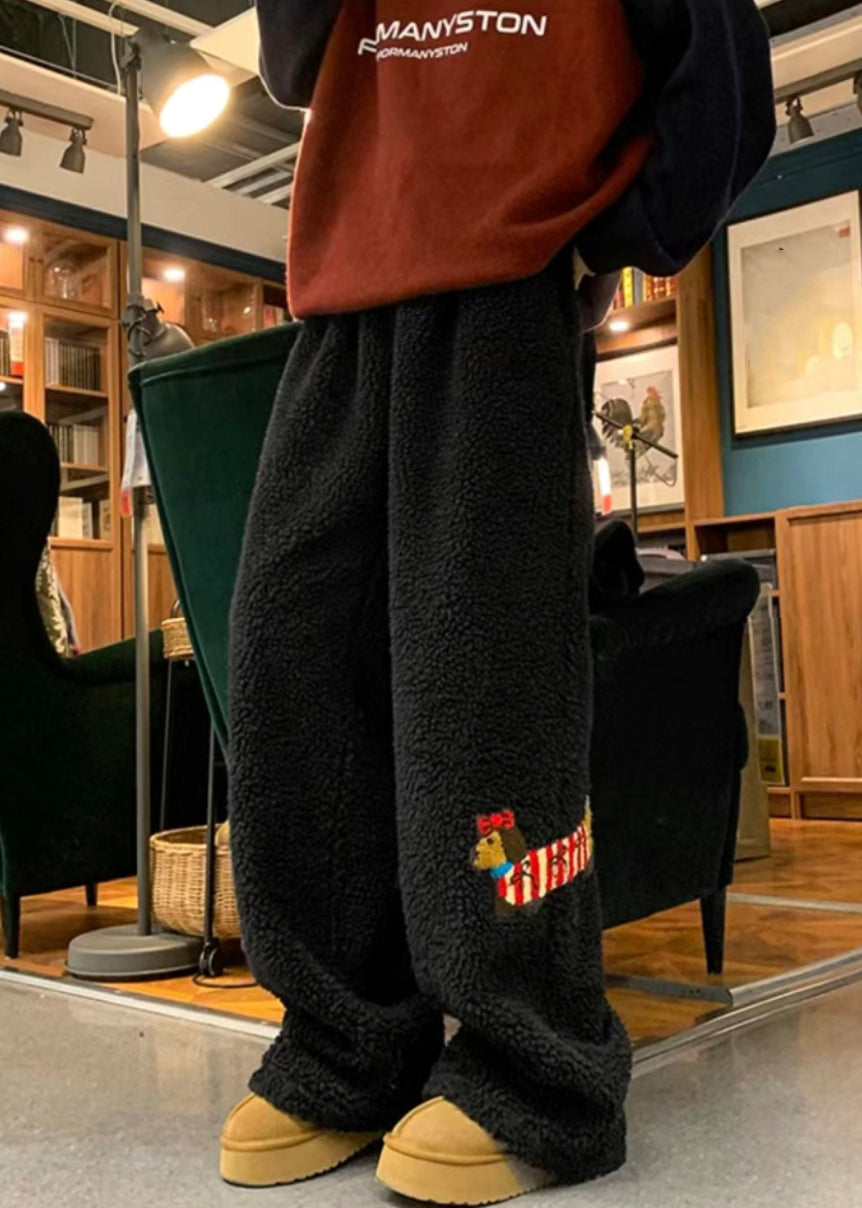 New Khaki Animal Pockets Teddy Faux Fur Mens Pants Winter RM058