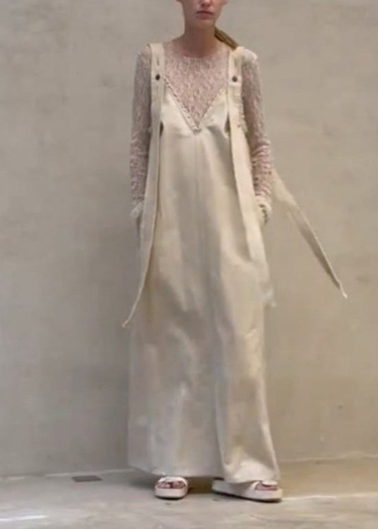 New Lace Top Beige Strap Skirt Two-Piece Set For Summer ZL003