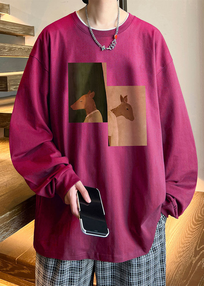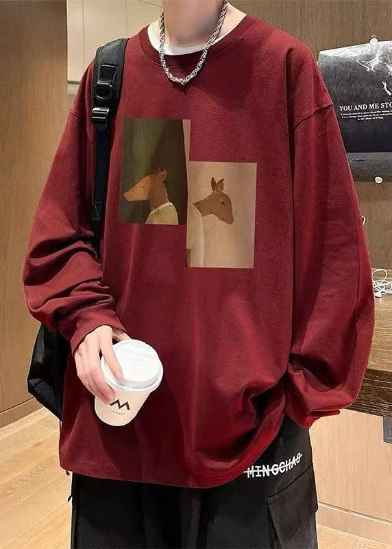 New Mulberry O Neck Print Cotton T Shirt Men Casual Clothing Fall WJ010