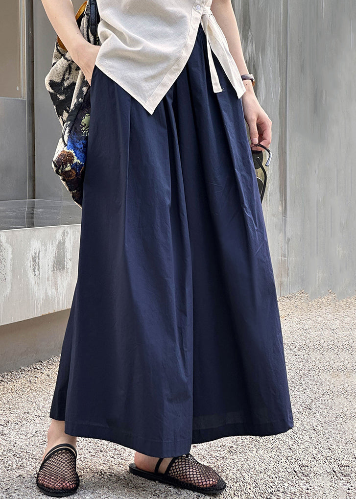 New Navy Pockets Elastic Waist Cotton Crop Pants Summer AF1077