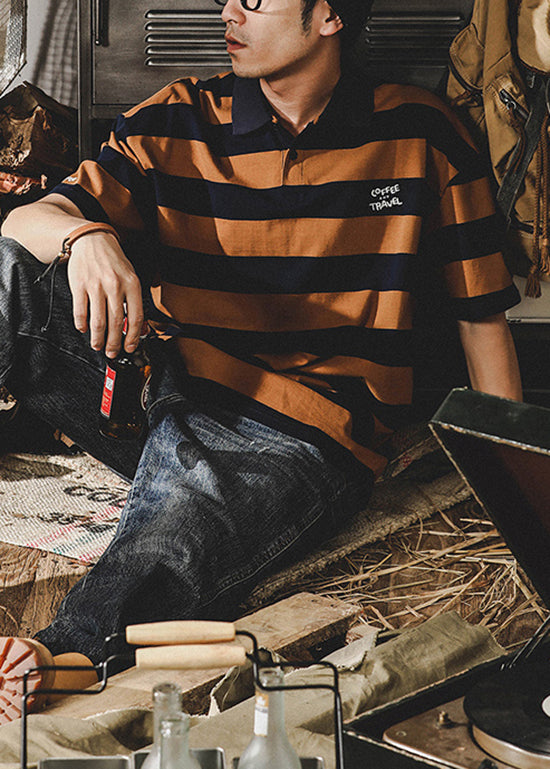 New Orange Striped Cotton Men Polo Shirt Summer QH009