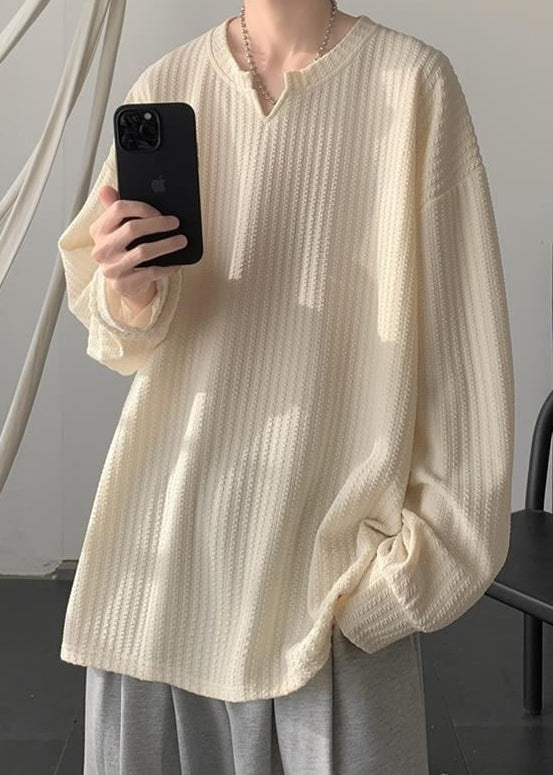 New Plus Size Apricot V Neck Cotton Mens T Shirts Fall WJ005