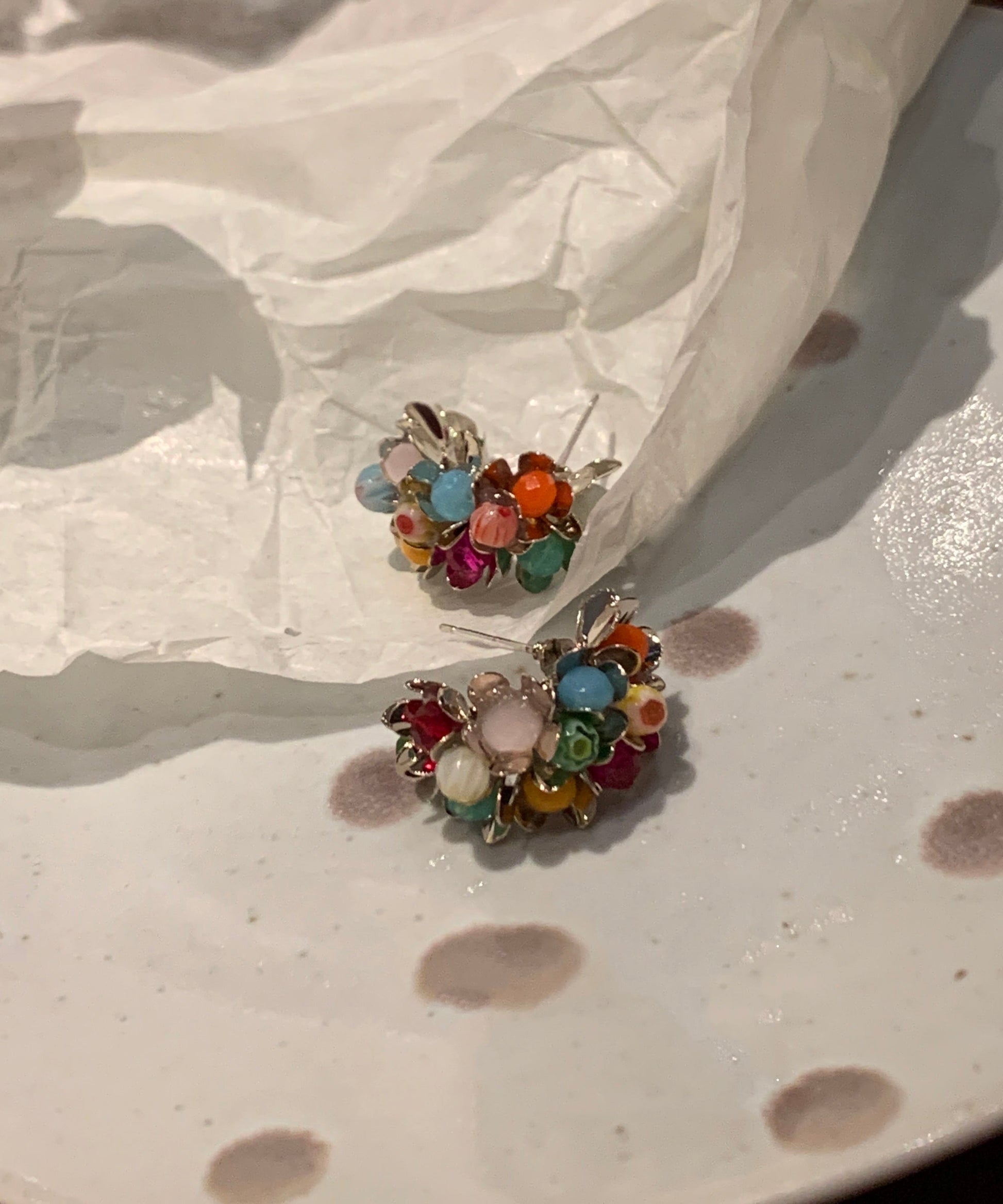 New Rainbow Sterling Silver Crystal Floral Stud Earrings WH001