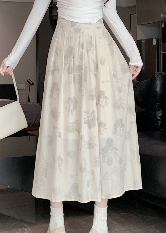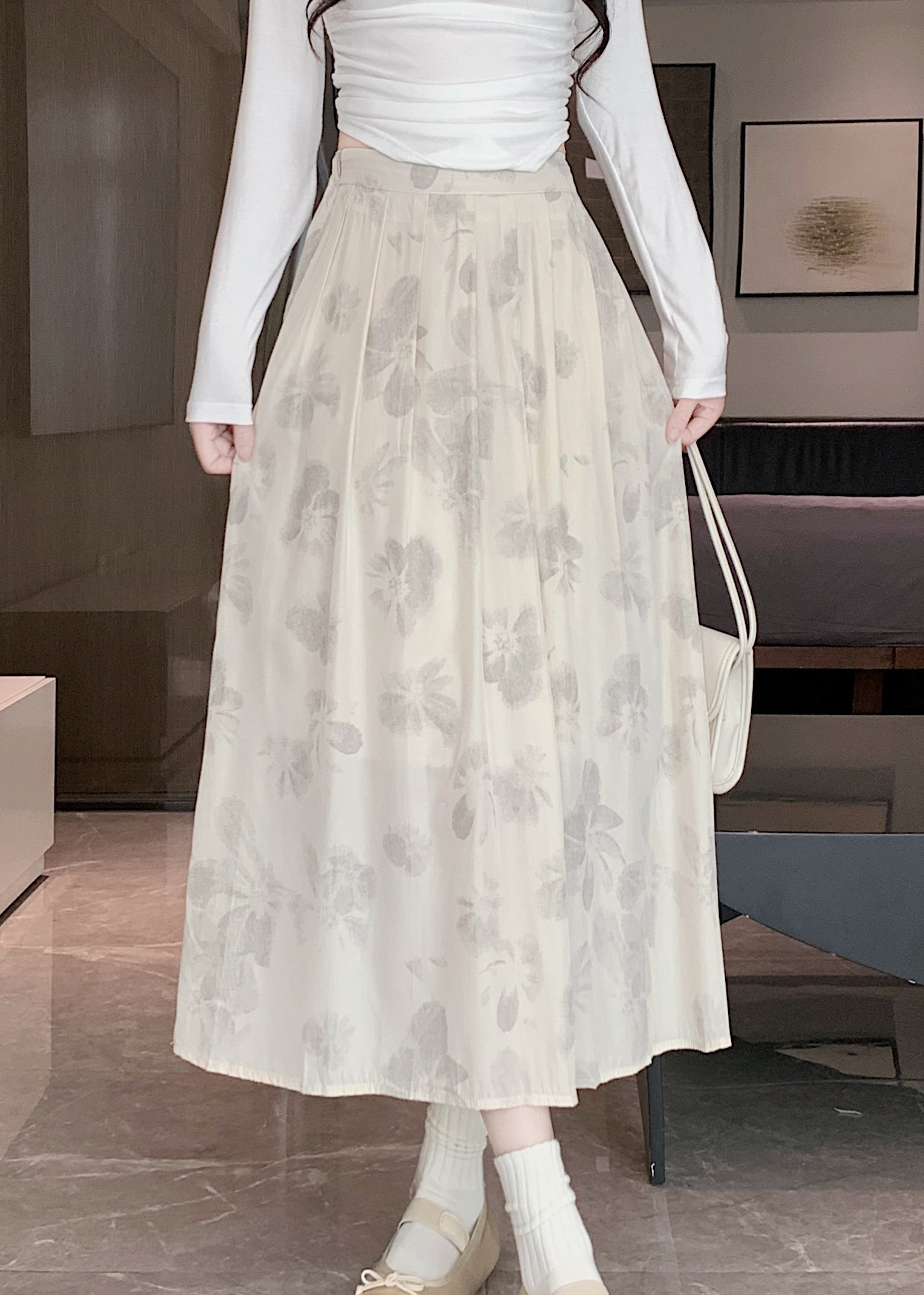 New Retro Black Print High Waist Cotton Pleated Skirt Spring TT1035