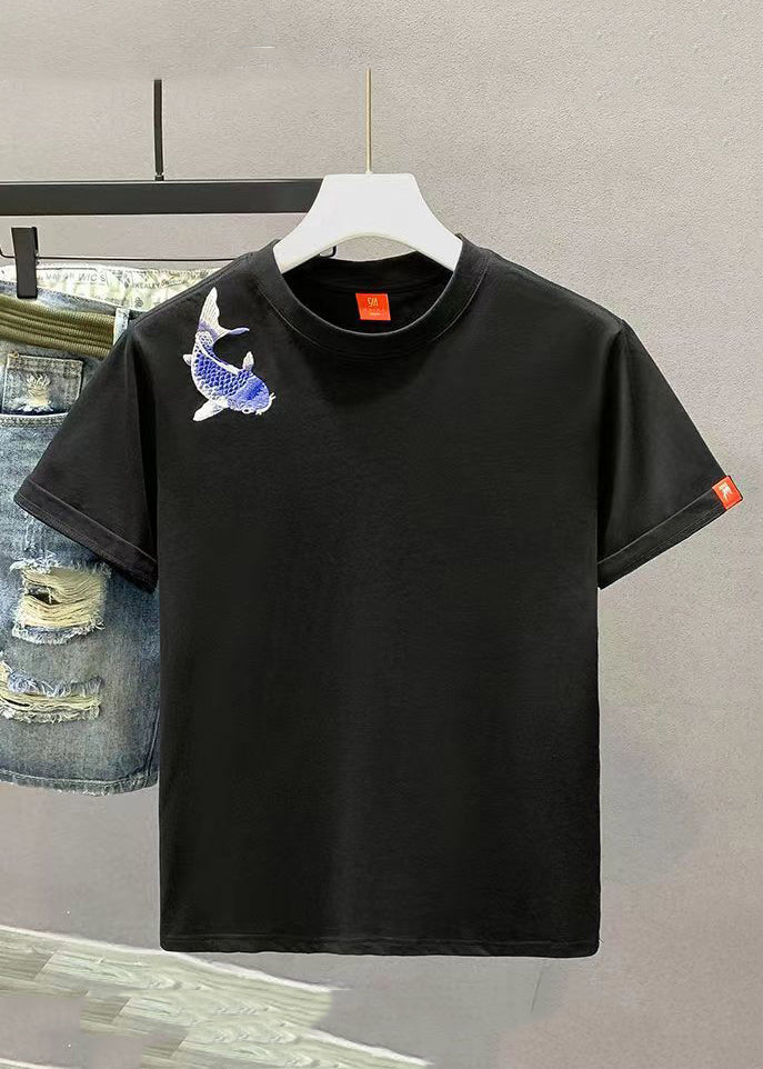 New White Embroideried Cozy Solid Cotton Mens T Shirts Summer LK065
