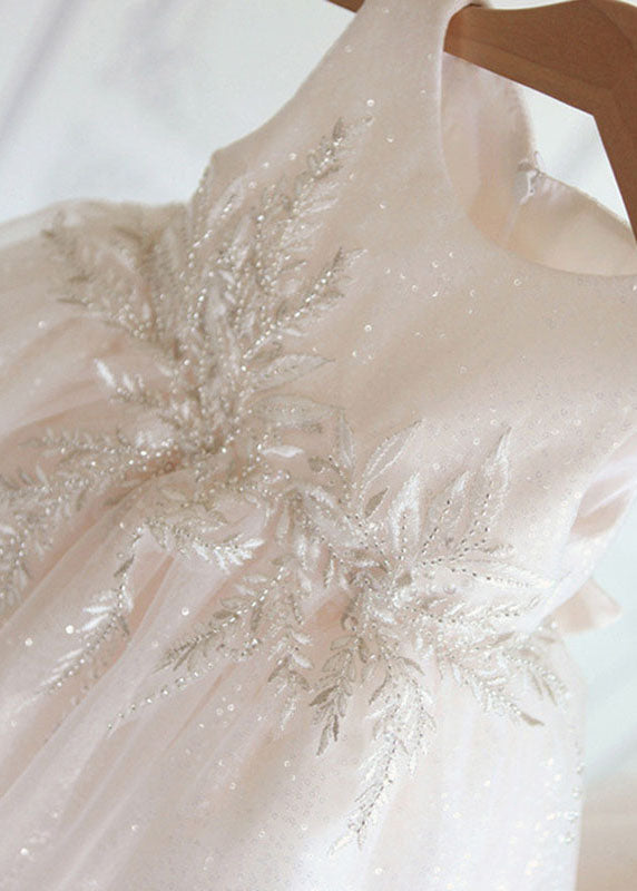 New White O-Neck Patchwork Tulle Kids Holiday Maxi Dress Summer YS017