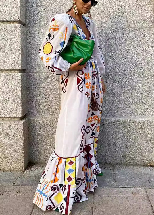 Elevate your wardrobe with our timeless New White V Neck Print Lace Up Cotton Dress. Featuring long sleeves and intricate lace details, this elegant piece exudes sophistication and class. Made from high-quality cotton, it will become an essential staple for any luxury wardrobe.