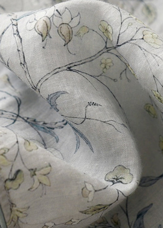 Organic Blue Stand Collar Print Cotton Top Bracelet Sleeve AM1046