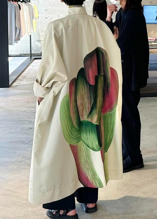 Indulge in luxurious style with the Original Design Apricot Print Cotton Trench for Fall, featuring a delicate stand collar and exquisite print.