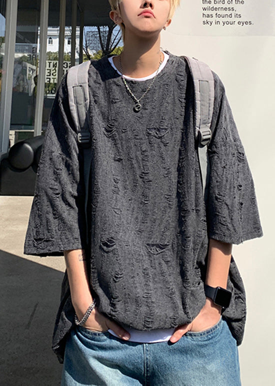 Original Design Beige O-Neck Ripped Cotton Men T Shirt Summer WA011