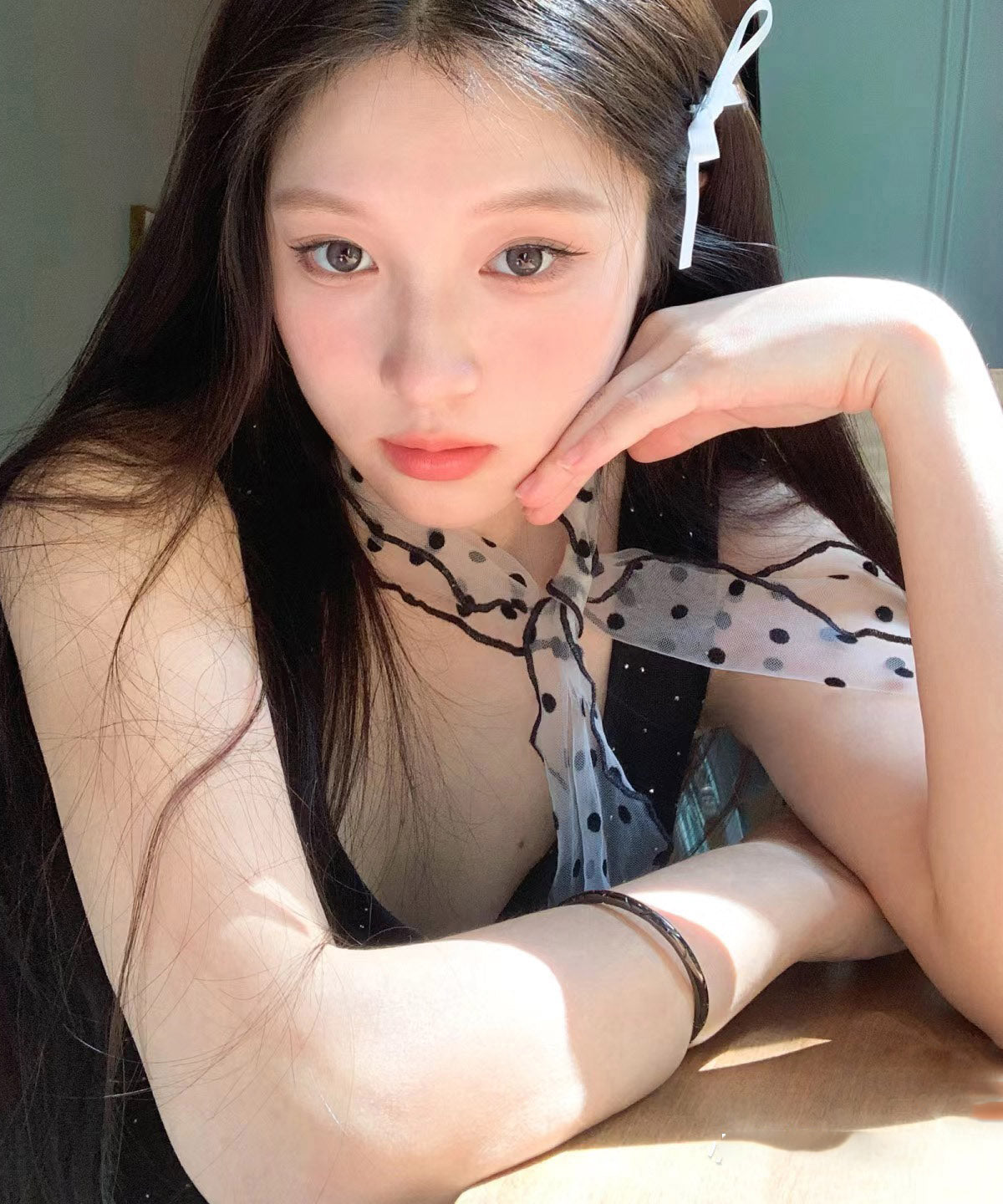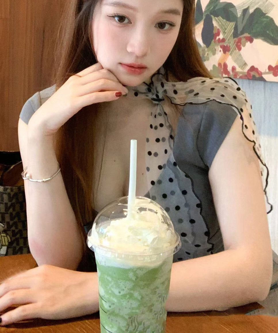 Original Design Black Tulle Dot Print Thin Silk Scarf YA009
