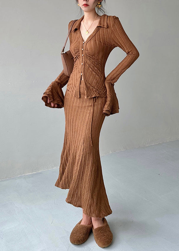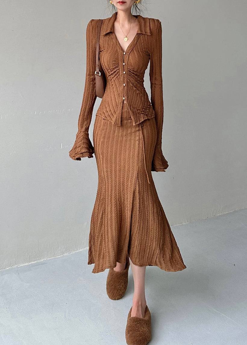Indulge in the luxurious style of our Original Design Blue Knitted Two Piece Set Flared Sleeve. Crafted with unique and intricate design, this set offers a perfect blend of elegance and comfort. Elevate your fashion game with the flared sleeves and make a statement that stands out.
