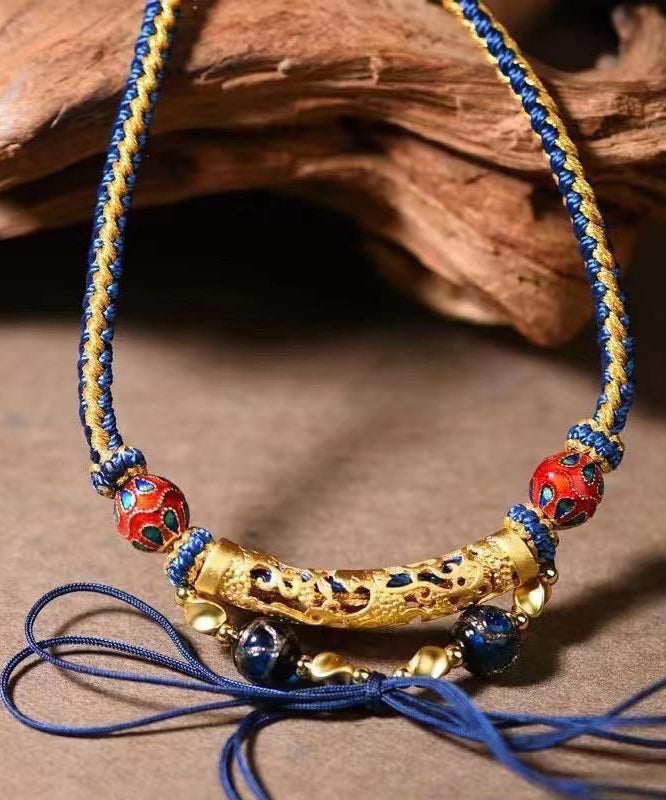 Original Design Colorblock Sterling Silver Overgild Beeswax Roundel Pendant Necklace GH1059