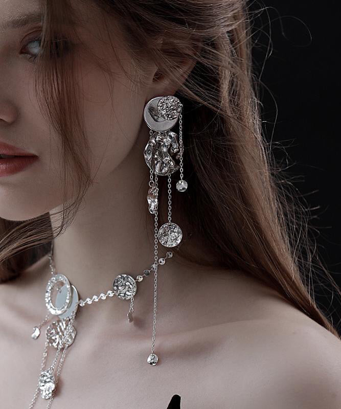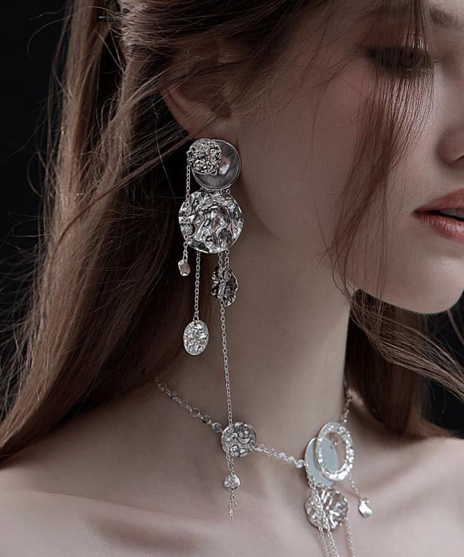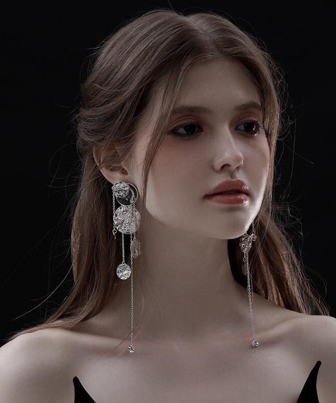 Original Design Drop Silk Copper Disc Earrings Tassel Wavy