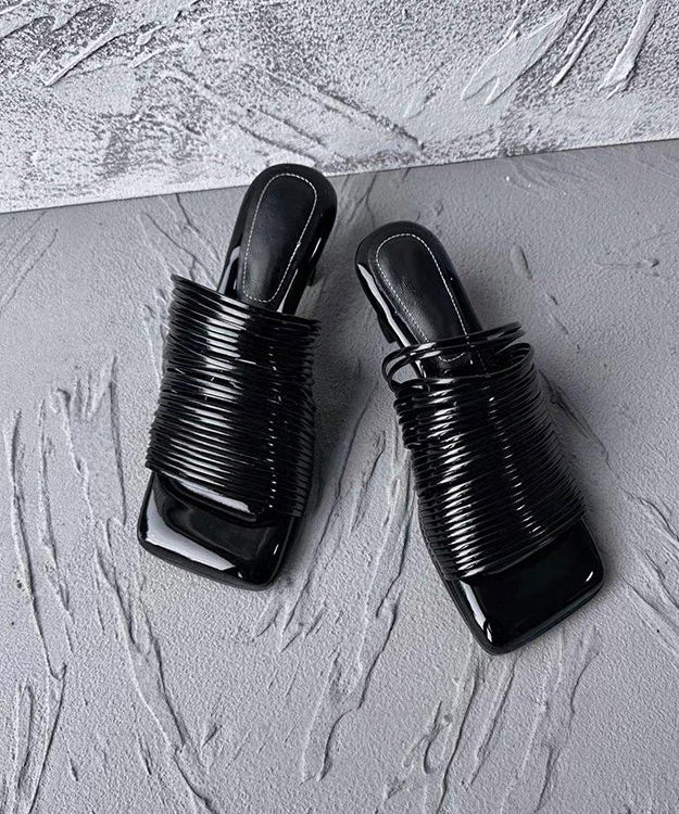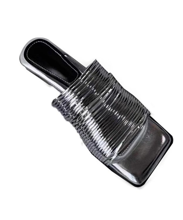 Original Design Gold Chunky Heel Slide Sandals Peep Toe OI080