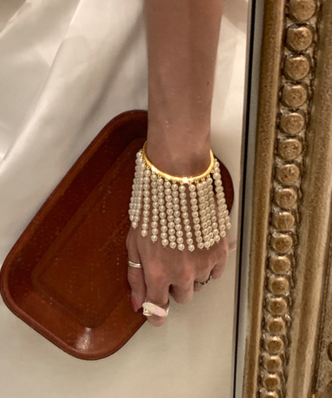 Original Design White Sterling Silver Overgild Pearl Tassel Cuff PO036