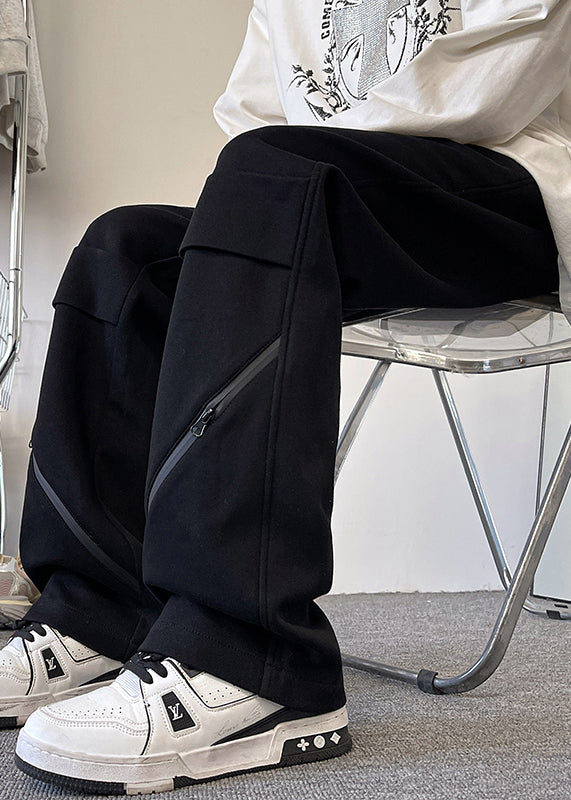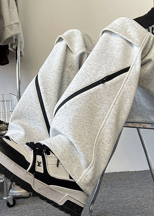 Original Grey Zippered Solid Elastic Waist Cotton Men Pants Fall WA045
