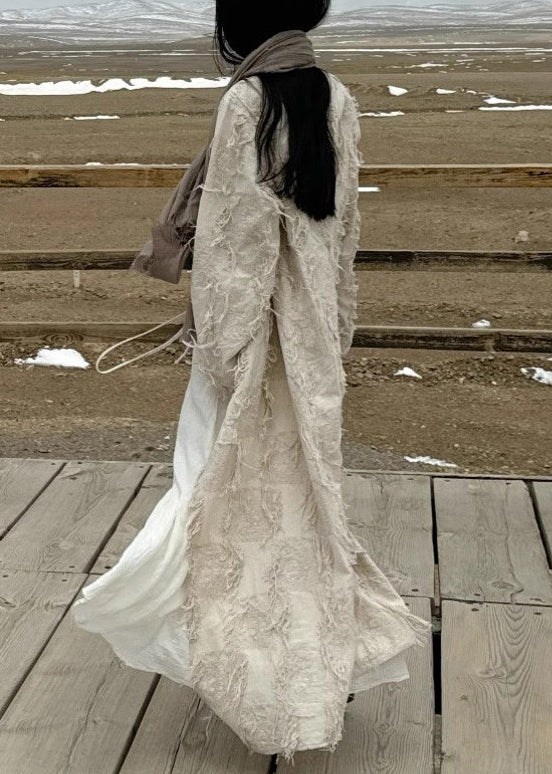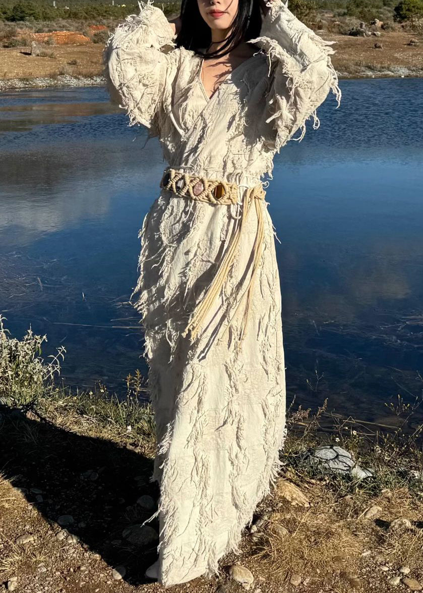 Original V Neck Lace Up Tasseled Cotton Long Cardigan Fall