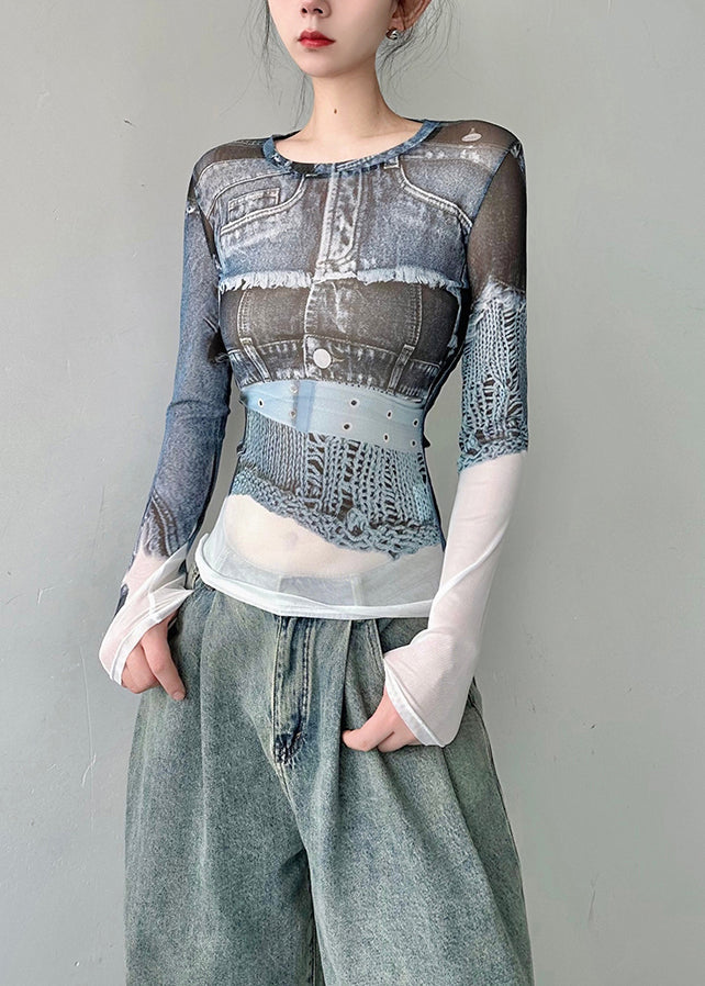 Introducing our Original O-Neck Print Tulle T Shirts for Fall. The slim fit design and luxurious tulle fabric create a sleek and sophisticated look, perfect for any occasion. Add a touch of elegance to your wardrobe with this one-of-a-kind piece.