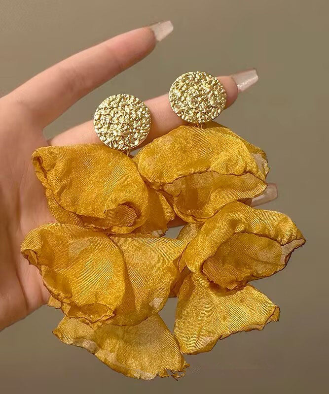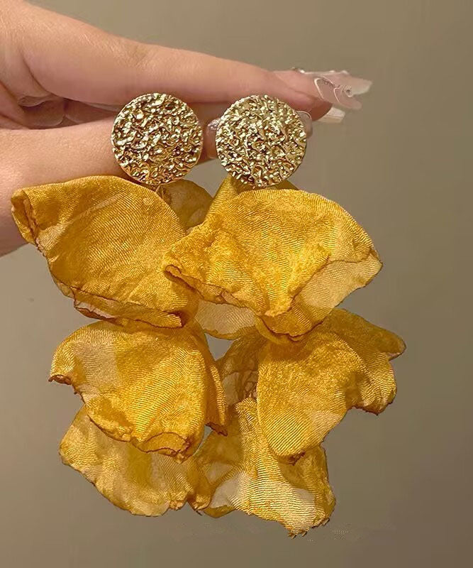 Oversize Yellow Sterling Silver Alloy Chiffon PetalTassel Drop Earrings
