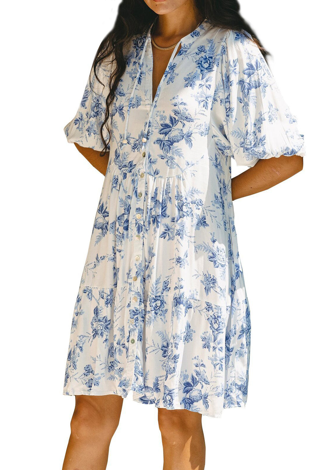 French Pink Peter Pan Collar Striped Mid Shirts Dress Half Sleeve