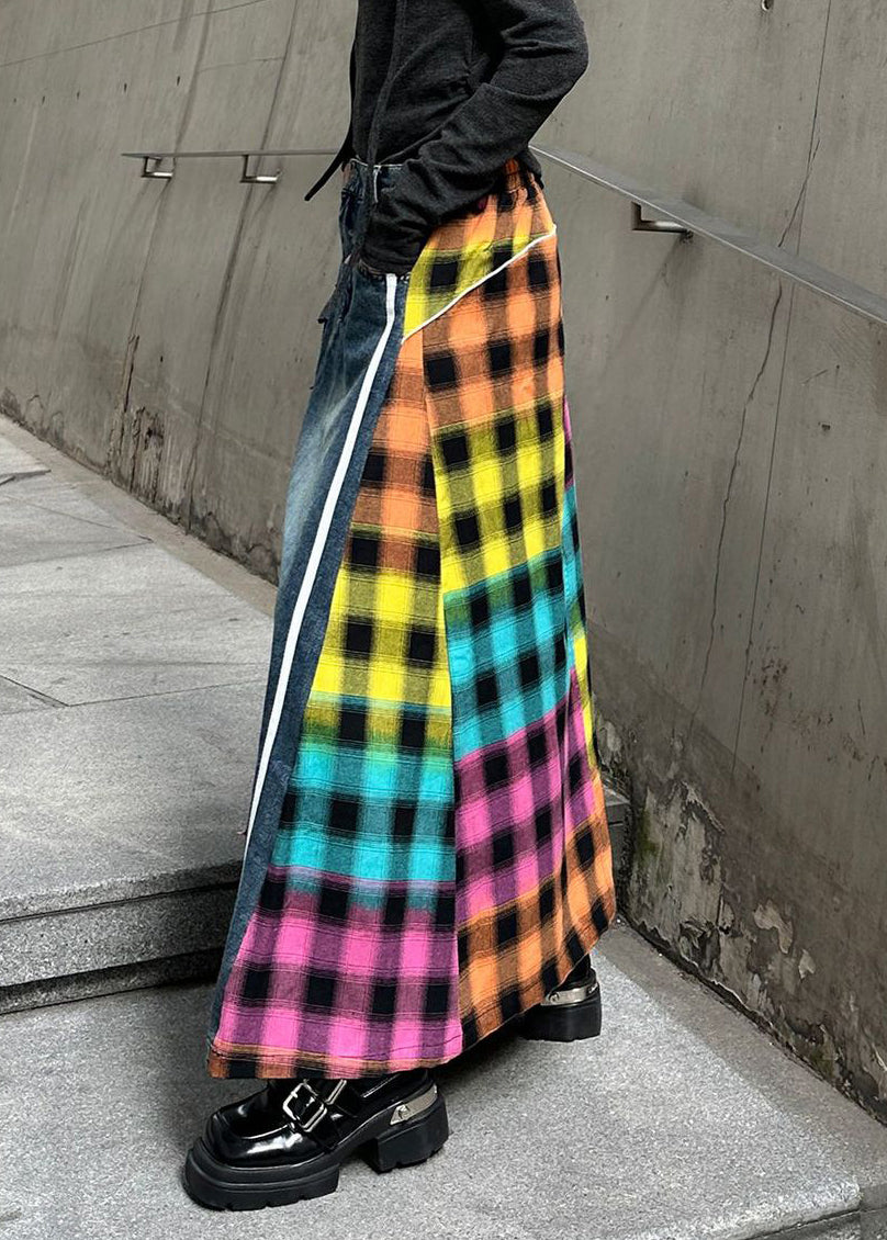 Modern Rose Asymmetrical Elastic Waist Patchwork Denim Skirts
