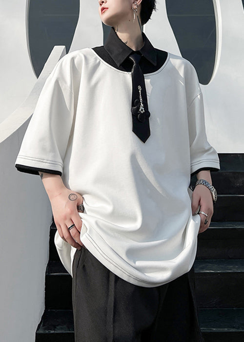 Patchwork Shirts Mens Original Polo Design Green Loose Cotton