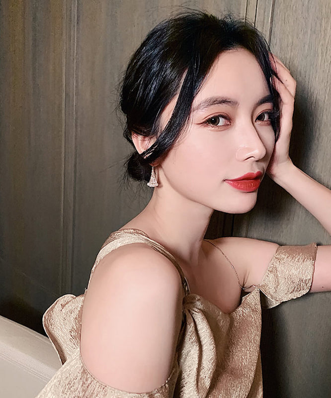Pearl Alloy Fashion Earrings Gold Fan-Shaped Copper Drop