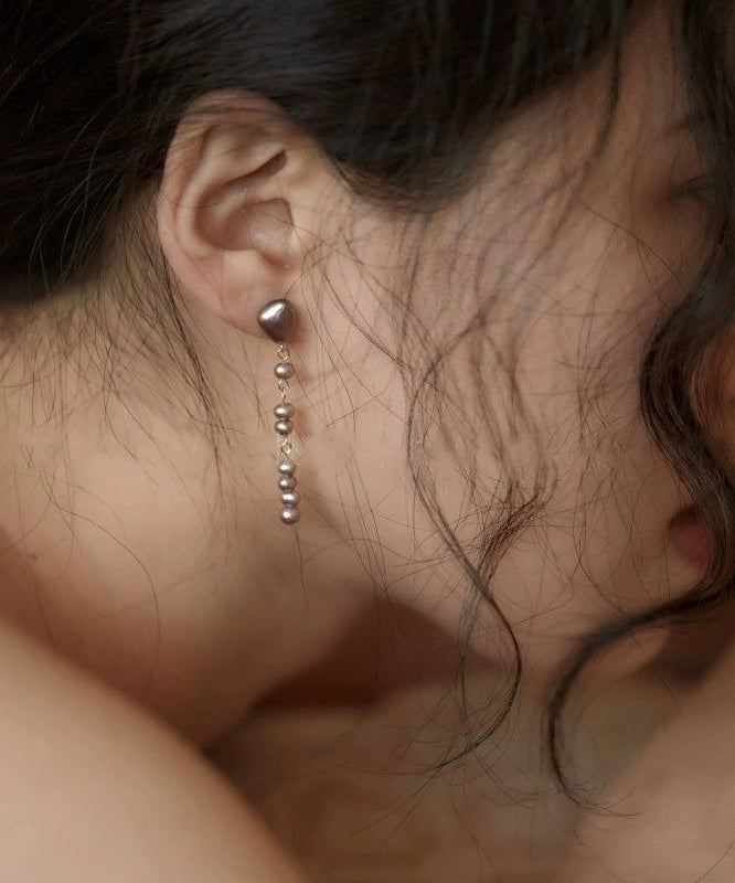 Pearl Earrings Metal Drop Purple Asymmetrical Modern