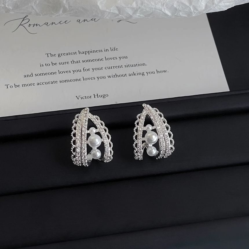 Cute Pink Crystal Pearl Tulle Floral Tassel Drop Earrings LL007