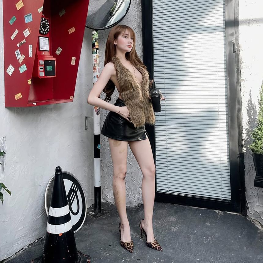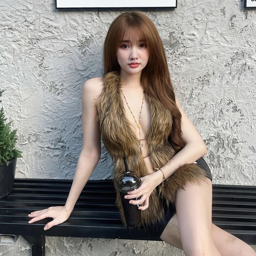Plunge Neckline Faux Fur Vest