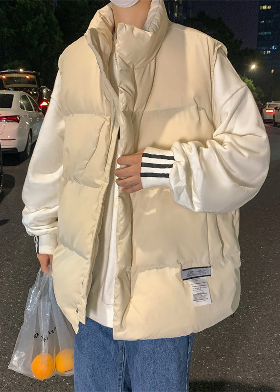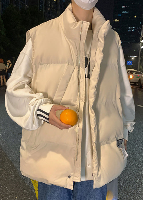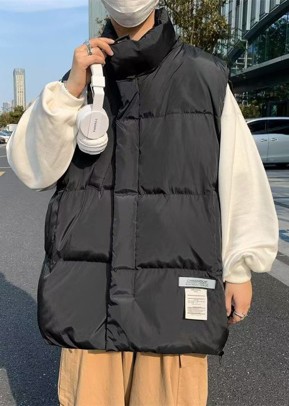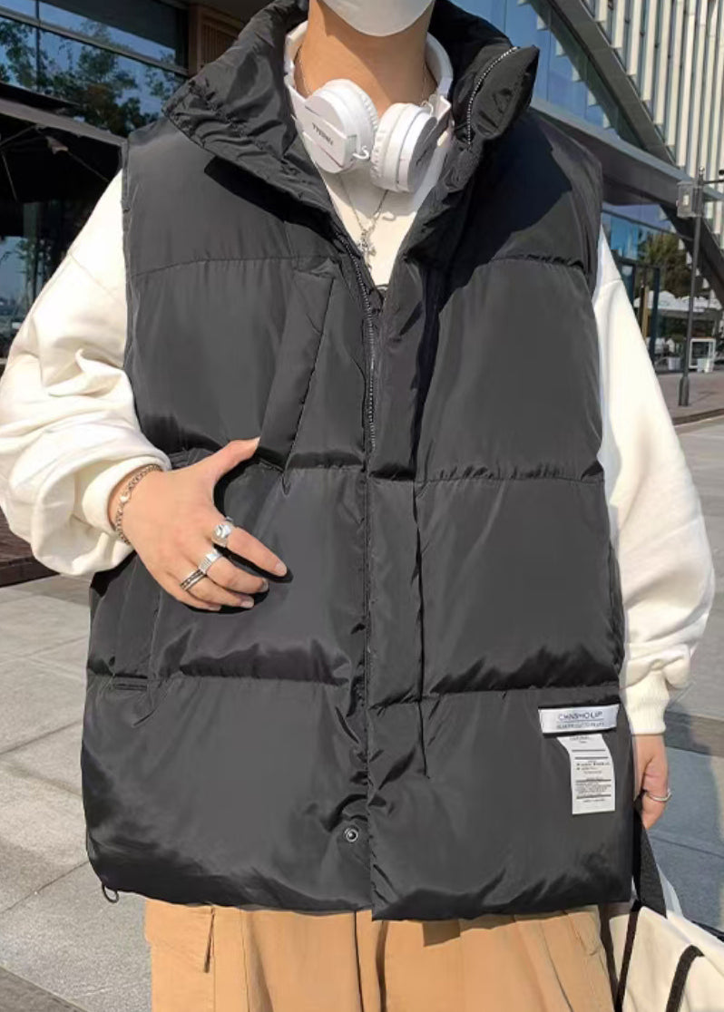 Plus Size Black Stand Collar Zip Up Cotton Filled Mens Waistcoat Sleeveless EQ029