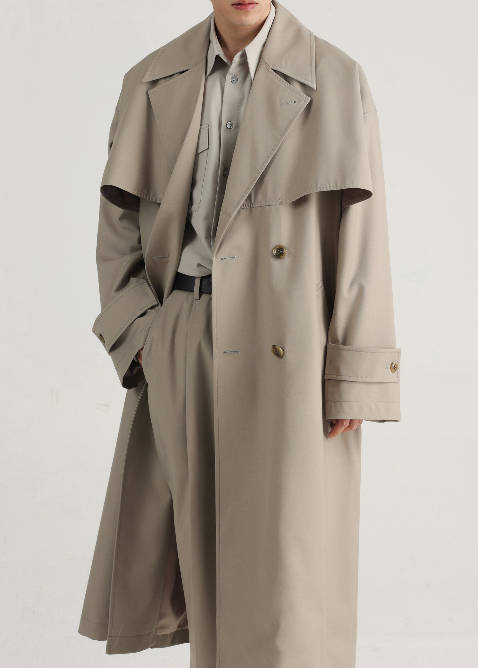 Plus Size Khaki Double Breast Side Open Cotton Mens Trench Coat Spring YQ001