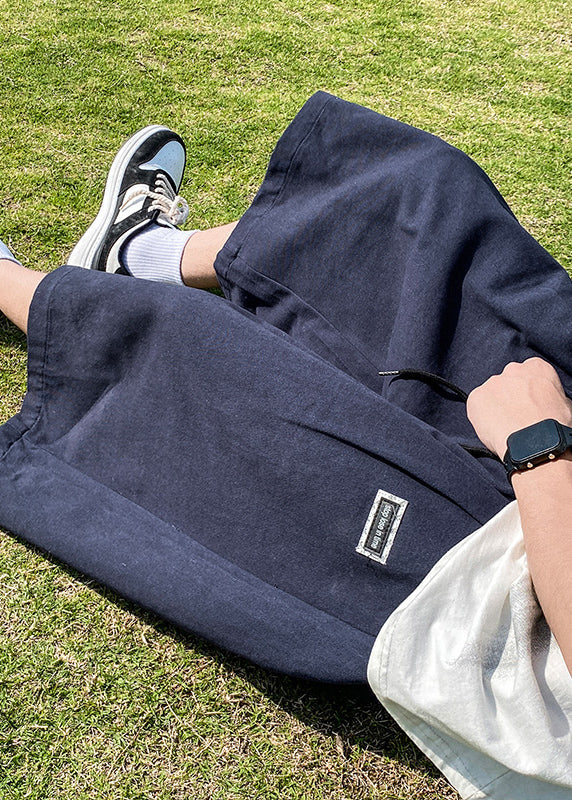 Plus Size Nave Blue Elastic Waist Tie Waist Ice Silk Men Pants Summer YT006
