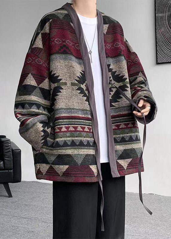 Plus Size Red Lace Up Wear On Both Sides Men Coat Fall WJ028