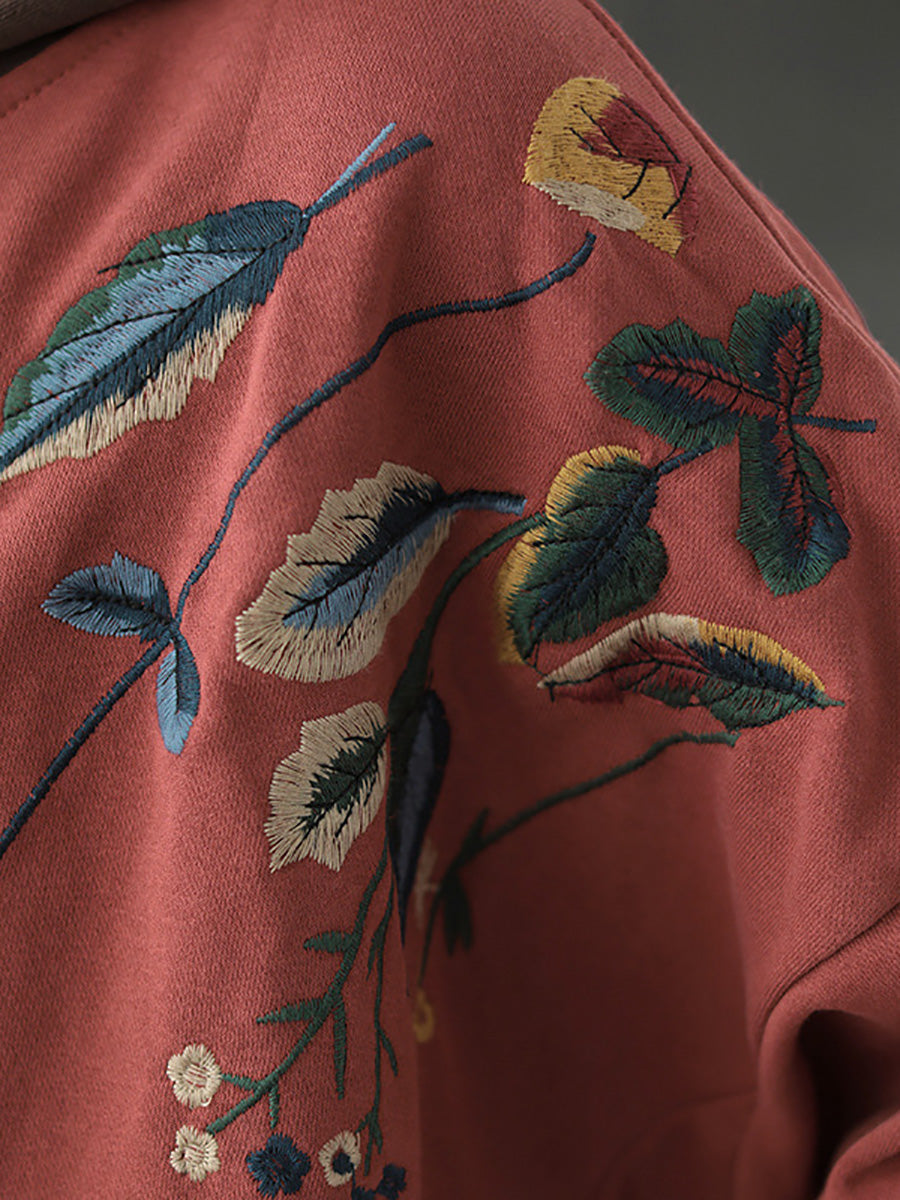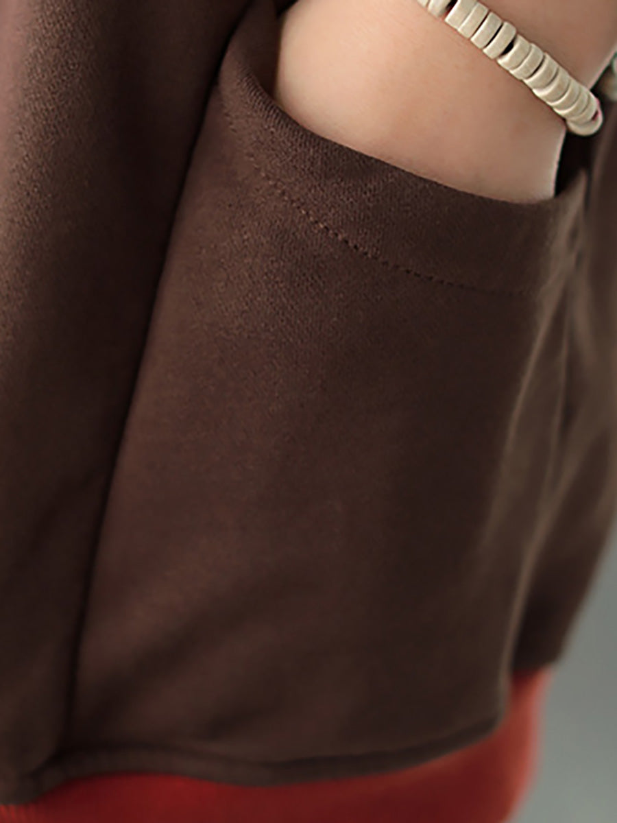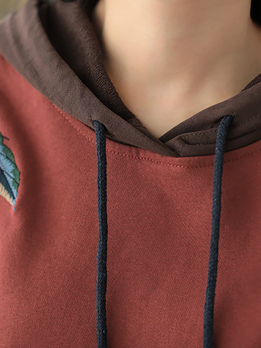Plus Size Women Autumn Leaf Hooded Colorblock 100%Cotton Sweatshirt WG023