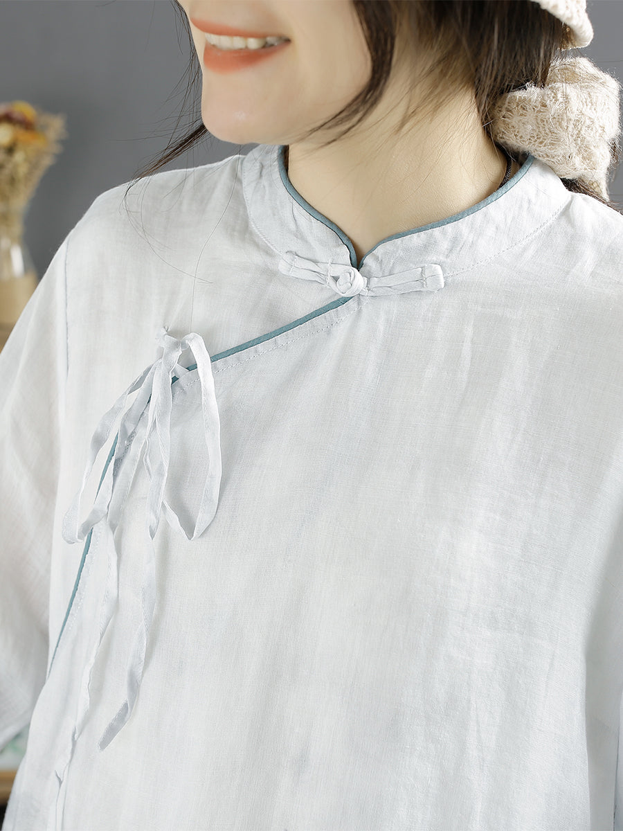 Plus Size Women Summer Bamboo Print Ramie Dress SC1029