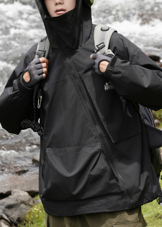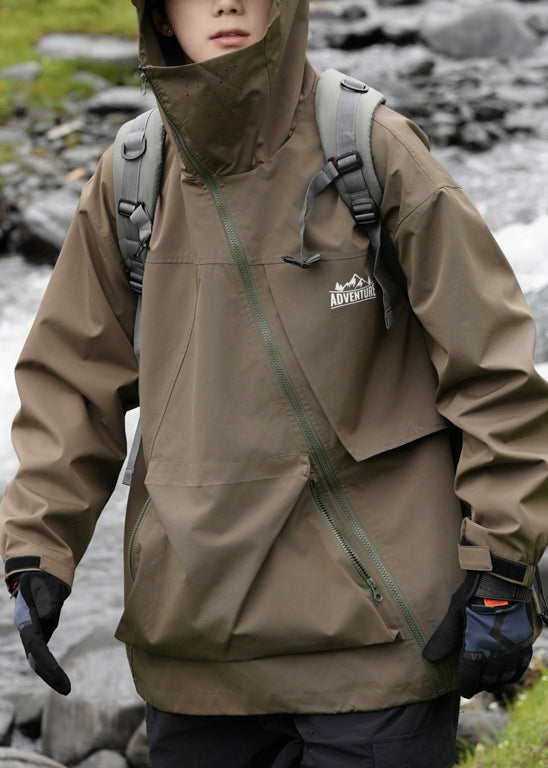 Pockets Hooded Loose Cotton Green Men Spring Zippered Coat